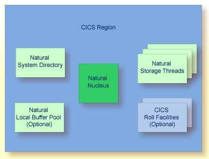 Der umgebungsabhängige Natural-Nukleuss (Beschreibung siehe Environment-Dependent Nucleus in der Natural-Installation-Dokumentation) für CICS besteht aus den folgenden Komponenten: