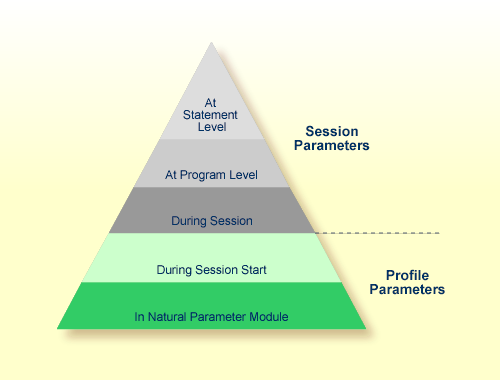 Das folgende Diagramm veranschaulicht, wann ein Parameter gesetzt werden kann, und stellt die Hierarchie von der untersten Ebene an der Basis der Pyramide bis zur höchsten Ebene an ihrer Spitze dar: