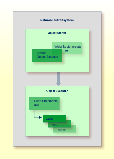 Das Natural-Laufzeitsystem hat zwei Hauptbestandteile: Den Object Starter und den Object Executor.