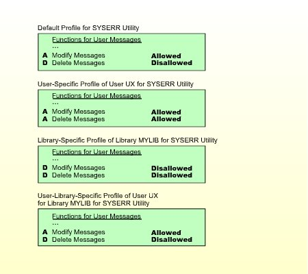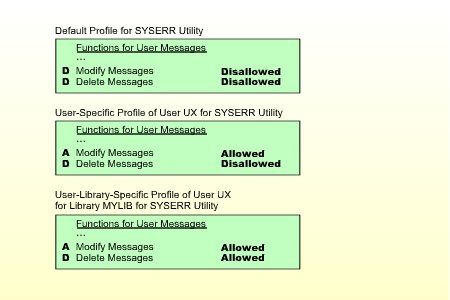 Ein benutzerspezifisches Dienstprogrammprofil legt fest, welche Funktionen eines Dienstprogramms ein bestimmter Benutzer verwenden darf, unabhängig von den Bibliotheken, die von den Funktionen betroffen sind (vorausgesetzt, für dieses Dienstprogramm sind keine bibliotheksspezifischen Profile definiert). Soll dieser Benutzer jedoch für eine bestimmte Bibliothek, die von den Funktionen des Dienstprogrammprofils betroffen ist, andere Funktionsnutzungsrechte haben, können Sie diese in einem benutzerbibliotheksspezifischen Dienstprogrammprofil festlegen.