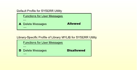 Ein bibliotheksspezifisches Dienstprogrammprofil legt fest, welche Funktionen eines Dienstprogramms verwendet werden dürfen, wenn es auf eine bestimmte Bibliothek angewendet wird. Für diese Bibliothek gilt es für alle Benutzer (unabhängig von etwaigen benutzerspezifischen Profilen). Soll jedoch ein bestimmter Benutzer andere Funktionsnutzungsrechte für diese Bibliothek haben, können Sie diese in einem benutzerbibliotheksspezifischen Dienstprogrammprofil festlegen.