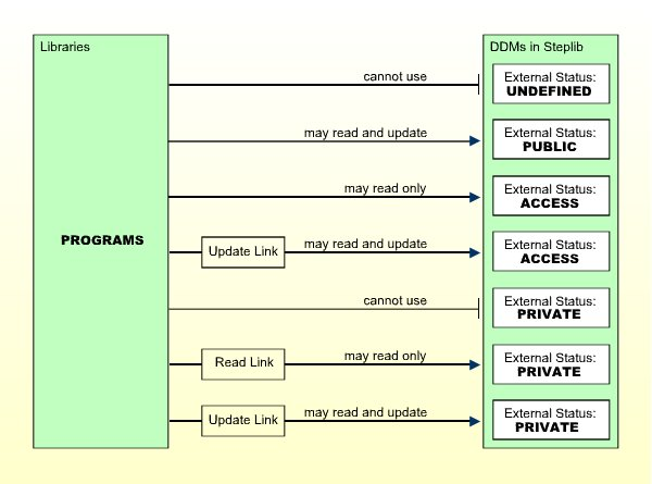 Der externe Status eines DDM ist nur dann relevant, wenn die Bibliothek, die das DDM enthält, von anderen Bibliotheken als Steplib verwendet wird.