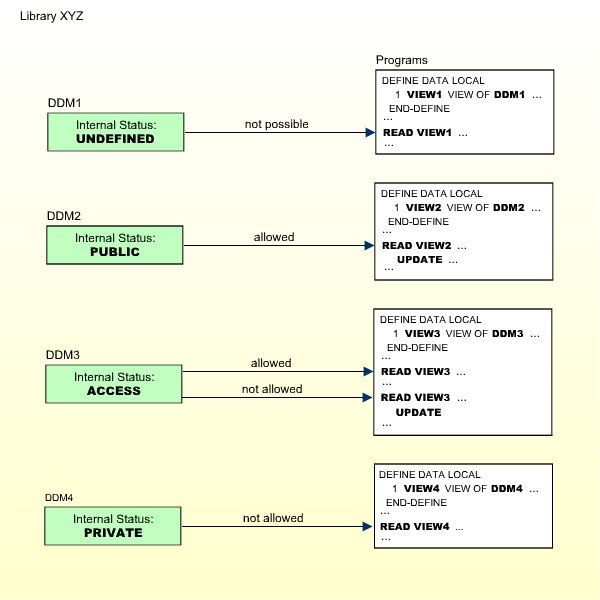 Bei jedem DDM, das verwendet werden soll, müssen in Natural Security zwei Statusklassifizierungen vorgenommen werden: ein interner Status und ein externer Status.