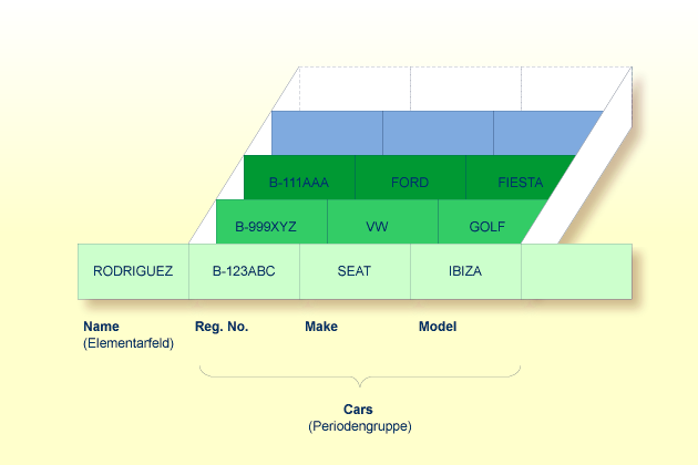 Adabas unterstützt Array-Strukturen innerhalb der Datenbank in Form von multiplen Feldern und Periodengruppen.