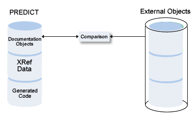 Comparison functions help to keep Predict documentation and the actual implementation of an information processing system consistent. Comparison functions are needed because the external objects can be changed with utilities of the programming environment independent of Predict, even if protection options for external objects are activated. See function Protection in the section General Defaults in the Predict Administration documentation.