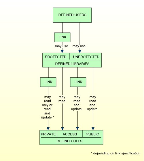 With this setting, the following applies: The FDIC file, the FUSER file, and the Cross-reference option can be set in both library security profiles and special-link profiles. |