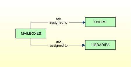 Mailboxes may be assigned to users and/or to libraries.