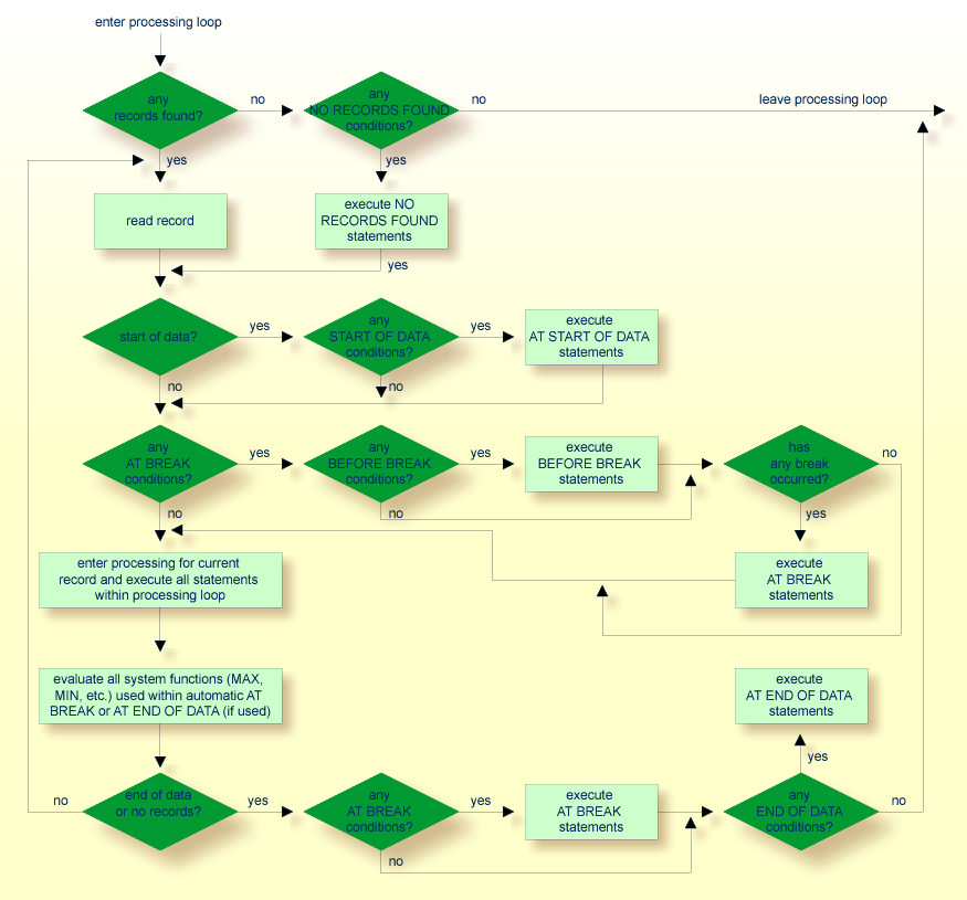 With a PERFORM BREAK PROCESSING statement, you can perform break processing at a specified position in a processing loop: the PERFORM BREAK PROCESSING statement is executed when it is encountered in the processing flow of the program.
