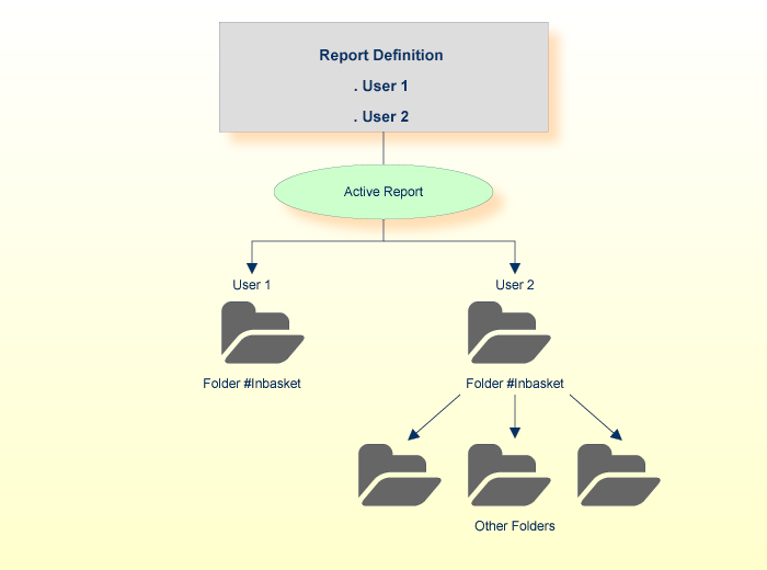 A folder is a container for active reports. When you define a report, you can assign to it the users who are to receive the resulting active report.