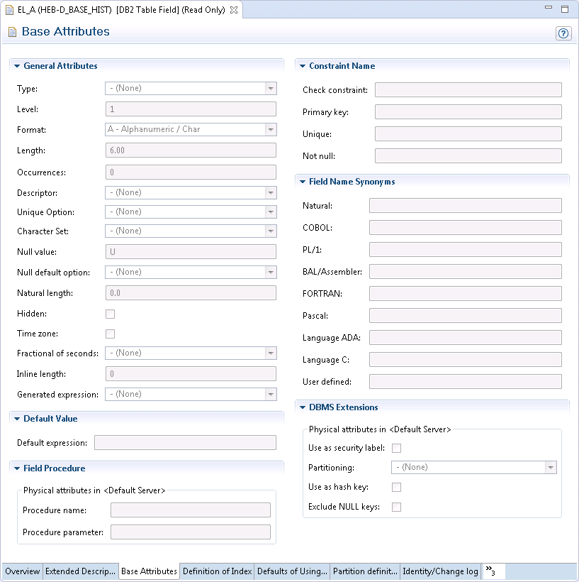 The Natural field length is shown in the dialog box which appears when you open a field (see Defining Additional Attributes of Fields). You can define it on the Base Extensions tab. The following rules apply: