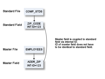 Standard fields and connected fields are coupled internally by means of Internal ID.