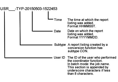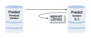 With some conversion functions, an object of type report listing is created in your new Predict file. This report listing contains the following: