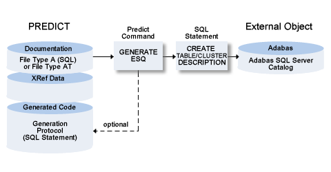 | One Adabas file corresponding to one SQL table | CREATE TABLE DESCRIPTION | Adds a description of a table in an Adabas SQL Server catalog without creating an Adabas file. |