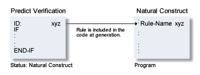 Processing rules are stored in Predict as attributes of verifications. If a verification has been linked to a field of a map, the Natural code of the rule is inserted when that map is cataloged.