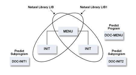Natural as well as 3GL applications allow up to 8 steplibs for one main library. This structure can be documented in Predict with the object type library structure. This structure is evaluated by LIST XREF and active retrieval functions for programs and systems.